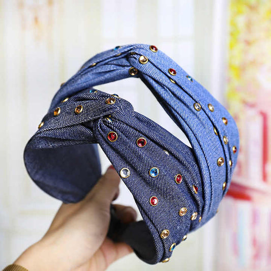 Crystal Denim Rhinestone Jeans Cross Headband™